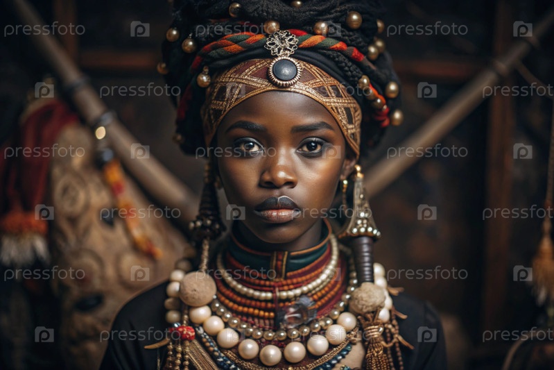 Красивая африканская девушка в традиционном национальном костюме. с костями. портрет символизирует традиции, культуру и красоту африканского народа