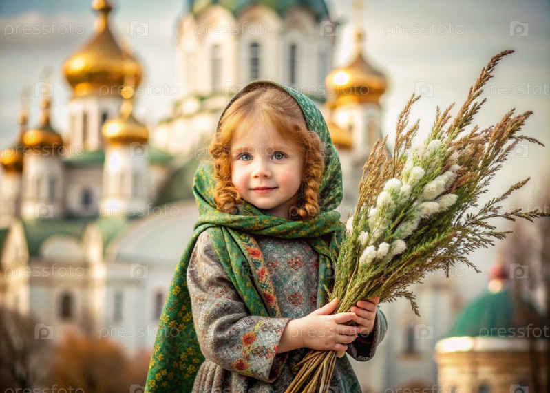 Всероссийский день семьи, любви, верности мужчина и женщина с ромашками с ребенком в руках на фоне православной церкви День святого Валентина Петра и Февронии