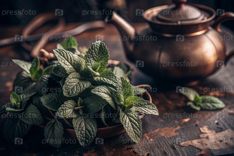 Закрытие зеленых листьев мяты. Листья с заметными венами и текстурой. Мента, бальзам для приготовления чая. Травяной чай для нервной системы