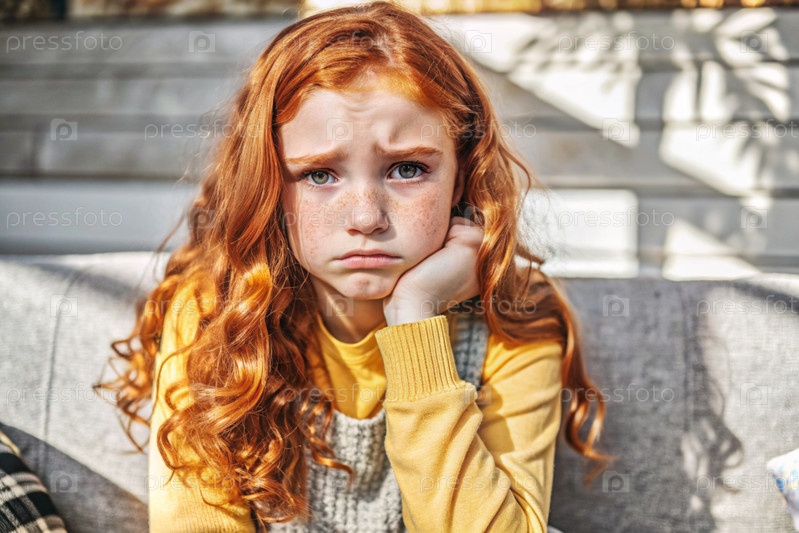 Портрет красивой, несчастной и печальной молодой рыжеволосой девочки-подростка.Проблемы, образование подростков