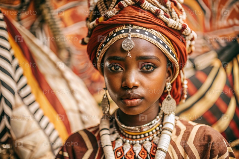 Красивая африканская девушка в традиционном национальном костюме. с костями. портрет символизирует традиции, культуру и красоту африканского народа