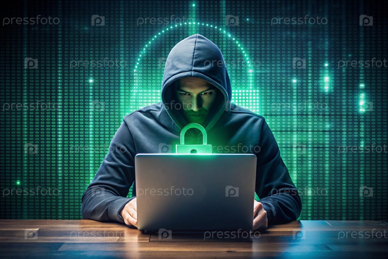 Хакер работает на ноутбуке, цифровые коды на виртуальном фоне. взлом и защита онлайн-данных. цифровые технологии, разработка программного обеспечения