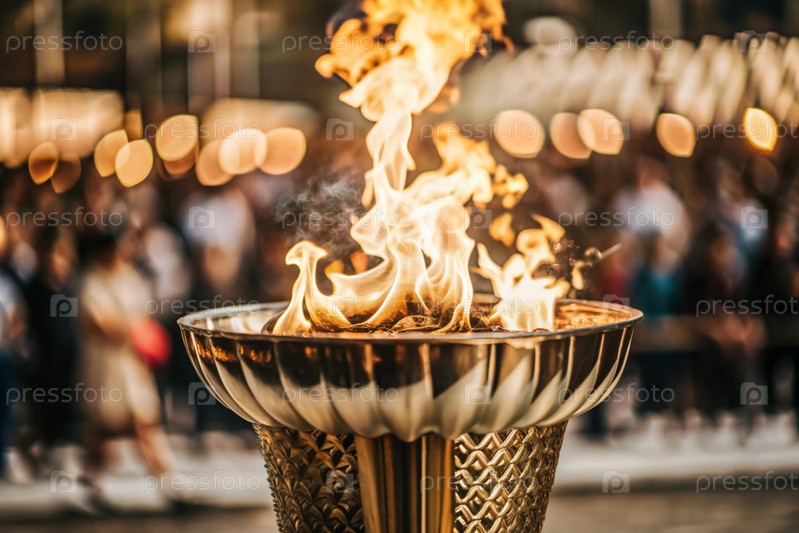 Пламя олимпийского факела горит среди красивого размытого боке