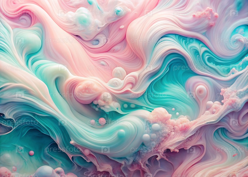 Абстрактный, мечтательный акварельный фон с волнами, полосами и жидкими потоками розового, синего и жемчуга
