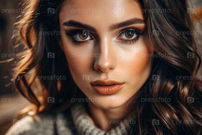 Глубокий эмоциональный портрет. Лицо молодой брюнетки без макияжа, с выразительными глазами, кудрявыми волосами. Естественная женская красота