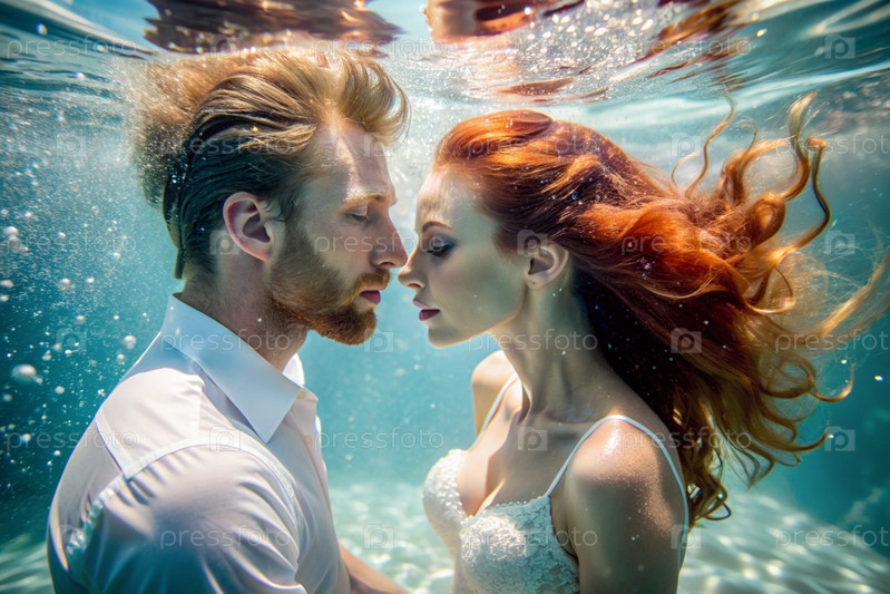 Красивые влюбленные. мужчина и женщина под водой на глубине. романтические отношения. необычное свидание