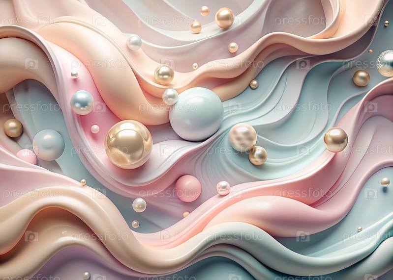 Абстрактный, мечтательный акварельный фон с волнами, полосами, жидкими потоками пастельного розового, синего и жемчуга