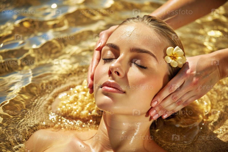 Близкий вид сверху молодая красивая женщина на спа-процедурах в баре концепция здорового образа жизни, расслабление косметические процедуры эго