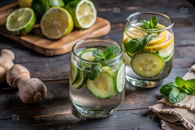 Детоксикация воды огурцом, лимоном, лаймом, имбирем и мятой для здорового питания