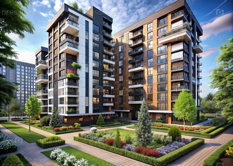 Современные многоэтажные жилые дома. Строительство новых жилых кварталов. Новые здания. Строительный бизнес. Ипотека для нового экологически чистого жилья