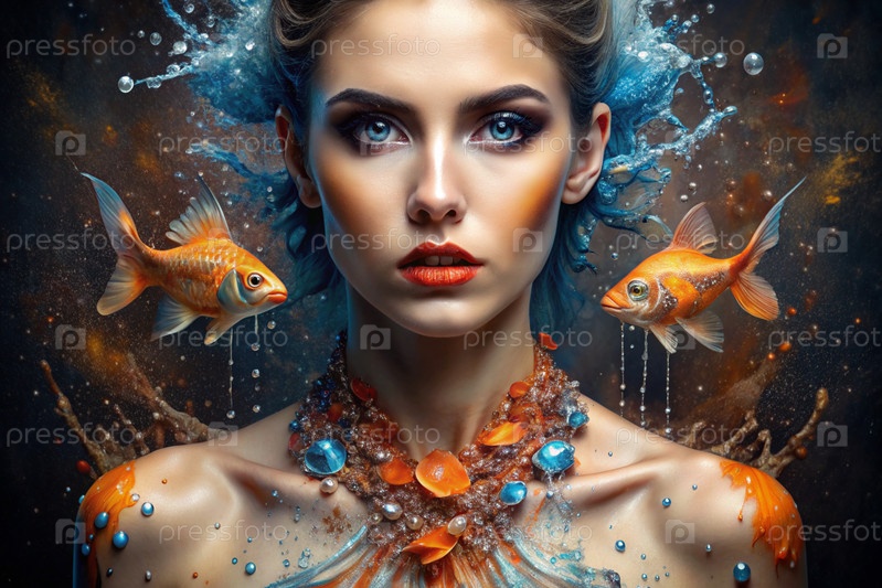 Знаки зодиака. Астрологический прогноз. Предсказания. Красивая девушка по знаку Зодиака Рыб. Понятие астрологии и гороскопа. Серия изображений 12 знаков зодиака