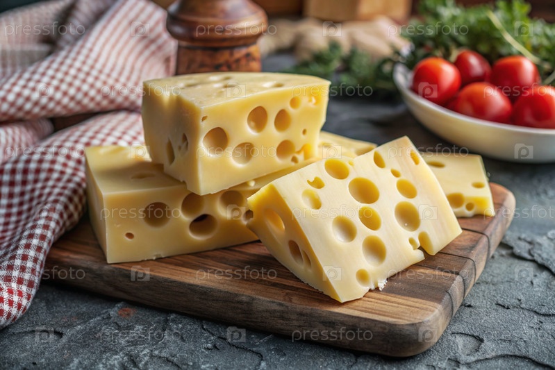 Сыр с Massadam отверстиями, кусок сыра на режущей доске