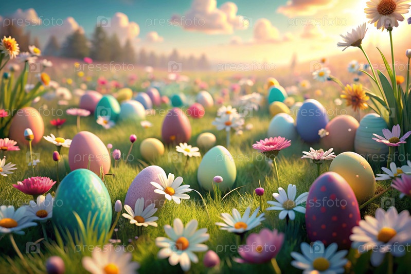 Красивый фон с пасхальными яйцами и весенними цветами