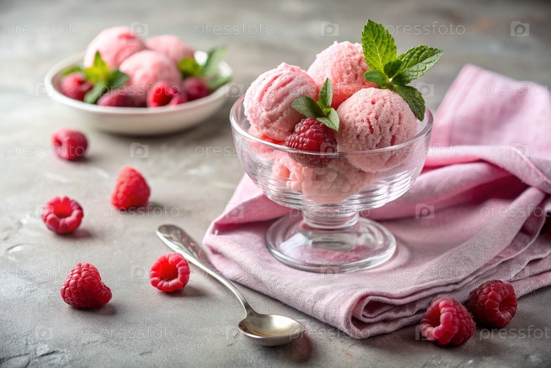 сладкий десерт. любовь к мороженому. малиновые шарики с мороженым в стеклянной миске и свежие клубники. баннер, реклама