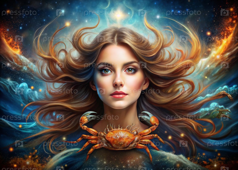 Знаки зодиака. Астрологический прогноз. Прогнозы. Красивая девушка в знаке Зодиака Рак. Понятие астрологии и гороскопа