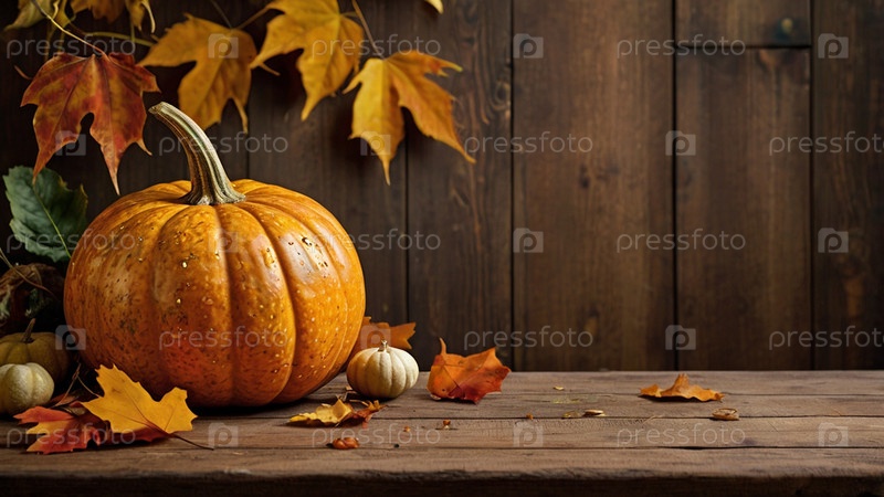 Осенний фон тыквы и осенние листья на фоне леса. Концепция Хэллоуина
