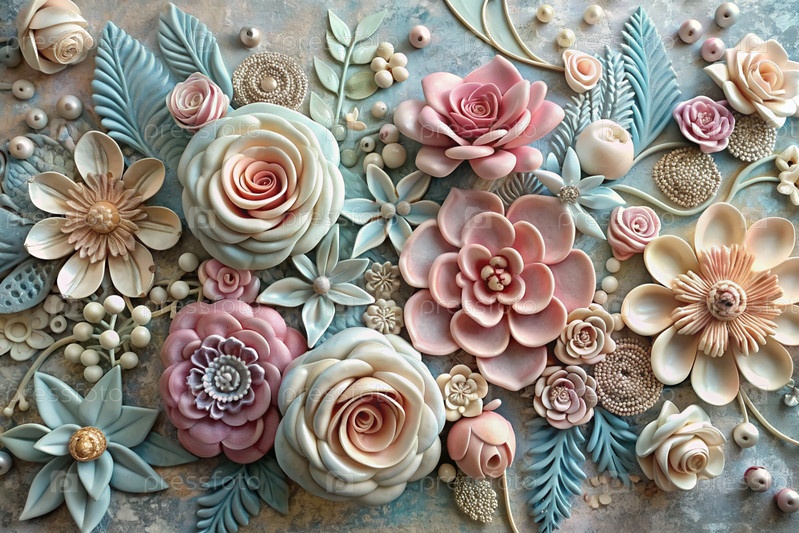 Красивый, воздушный, нежный цветочный фон в синих и розовых тонах