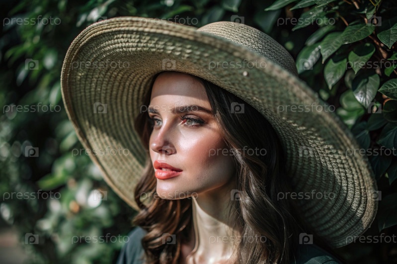 Летние каникулы на пляже, крупный план красивой женщины в соломенной шляпе.Лето.Отдых и отдых, место для копирования