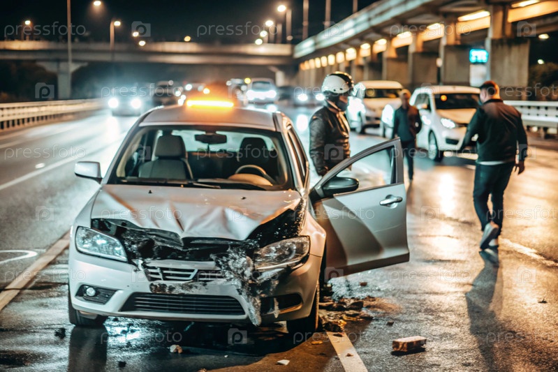 Автомобили получают несчастные случаи, аварии на дороге. повреждены, автомобили разбились на шоссе. концепция автострахования