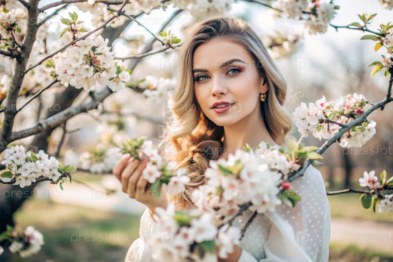 Весна.Портрет.Красавая девушка в цветущем саду.Весенние цветения