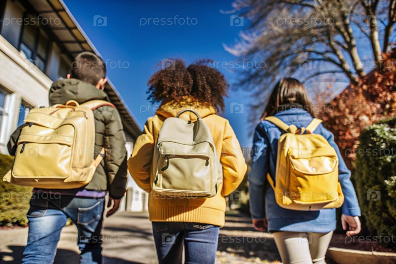 Праздник приходится на 1 сентября. Дети с желтыми рюкзаками бегут в школу. Обратный взгляд. Давайте вернемся в школу. Концепция нового учебного года в школе. Осенний день знаний