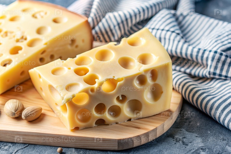 Сыр с Massadam отверстиями, кусок сыра на режущей доске