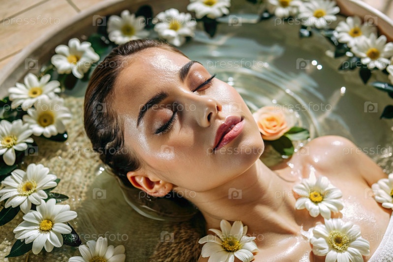 Близкий вид сверху молодая красивая женщина на спа-процедурах в баре концепция здорового образа жизни, расслабление косметические процедуры эго