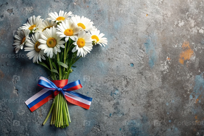 Всероссийский день семьи, любви и верности.Дейзи - букет ромашки с лентой трехцветного цвета России. День святого Валентина Петра и Февронии