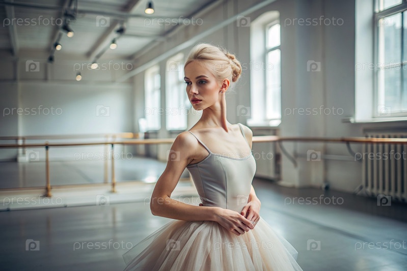 Портрет красивой молодой балерины в балетном зале, сияние русского балета, балерина в туту на фоне репетиционного зала
