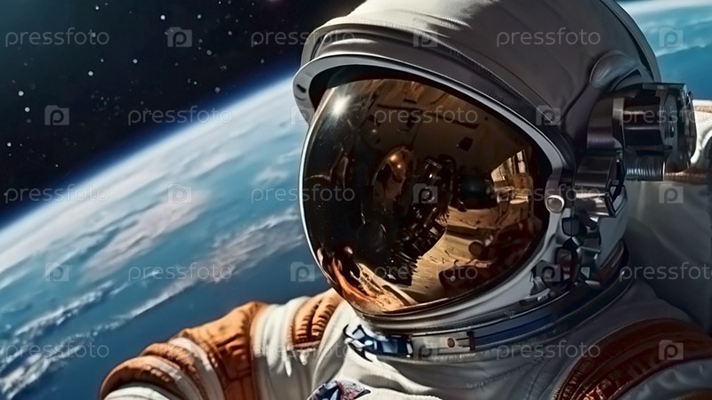 Счастливый космический день. астронавт в скафандре в космосе. захватывающий вид на планету Земля. изображение, созданное с использованием искусственного интеллекта