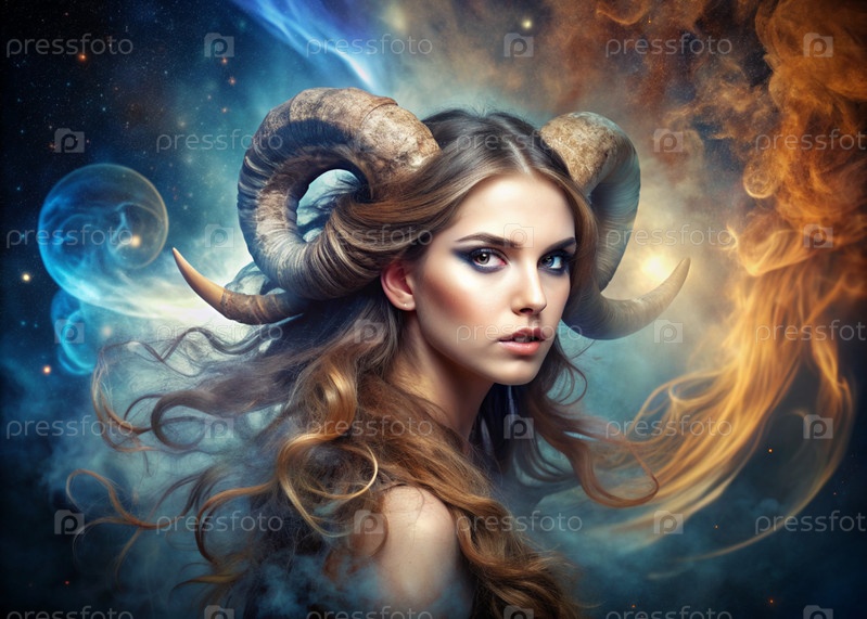 Знаки Зодиака. Астрологический прогноз. Предсказания. Красивая девушка в знаке зодиака Козерог. Понятие астрологии и гороскопа. Серия изображений 12 знаков зодиака