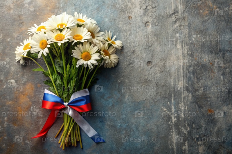 Всероссийский день семьи, любви и верности.Дейзи - букет ромашки с лентой трехцветного цвета России. День святого Валентина Петра и Февронии