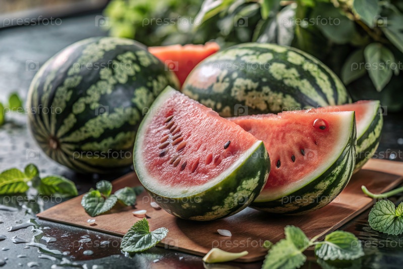 Закрытие свежих ягод арбуза. Вкусные ягоды и фрукты ярко-красного цвета с капельками воды. Вегетарианство. Здоровое питание. Свежие плоды на столе