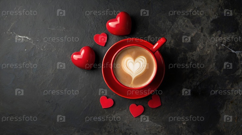 Концепция Дня святого Валентина для кафе и ресторанов красные чашки кофе латте с сердцами вокруг горячие напитки для влюбленных