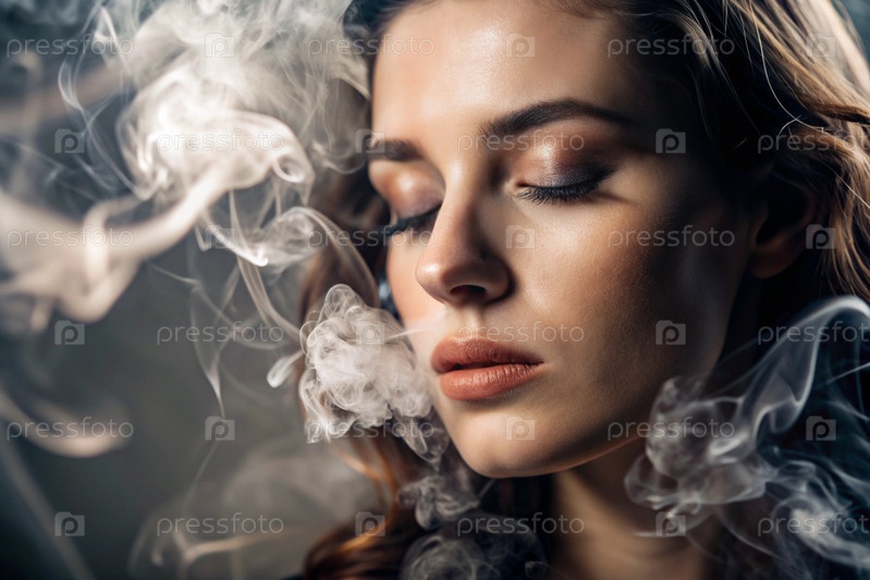 Молодая красивая женщина, завернутая в дым. 'Датура', закрывающая лицо прекрасной девушки