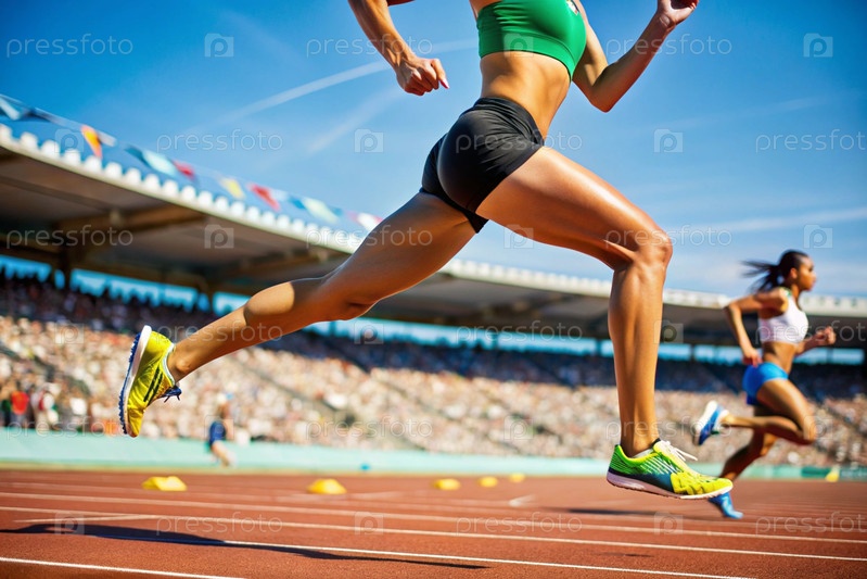Ноги чернокожего афроамериканского спортсмена сближаются во время спринтовой гонки на спортивном мероприятии