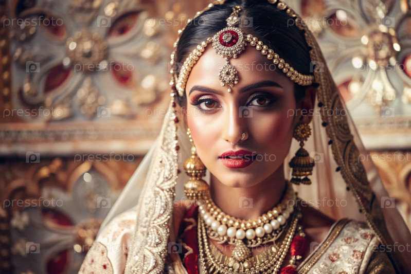 Красивая индийская девушка в традиционном национальном костюме, сари. со слонами. портрет символизирует традиции, культуру и красоту народа Индии