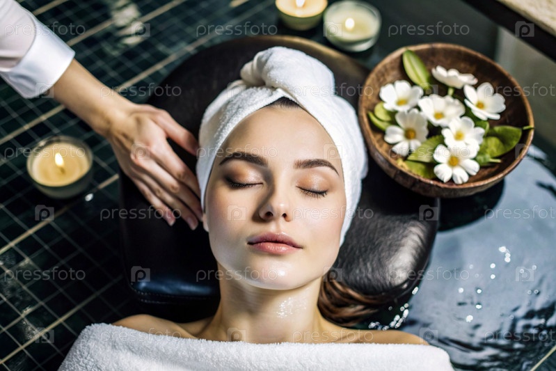 Близкий вид сверху молодая красивая женщина на спа-процедурах в баре концепция здорового образа жизни, расслабление косметические процедуры эго
