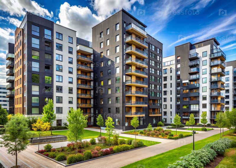 Современные многоэтажные жилые дома. Строительство новых жилых кварталов. Новые здания. Строительный бизнес. Ипотека для нового экологически чистого жилья