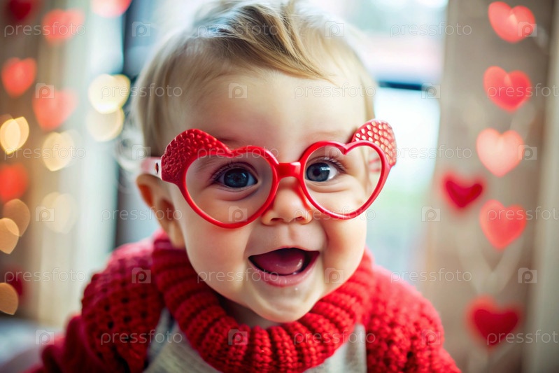 Милая девочка в стильных красных очках в форме сердца проводит веселый День святого Валентина