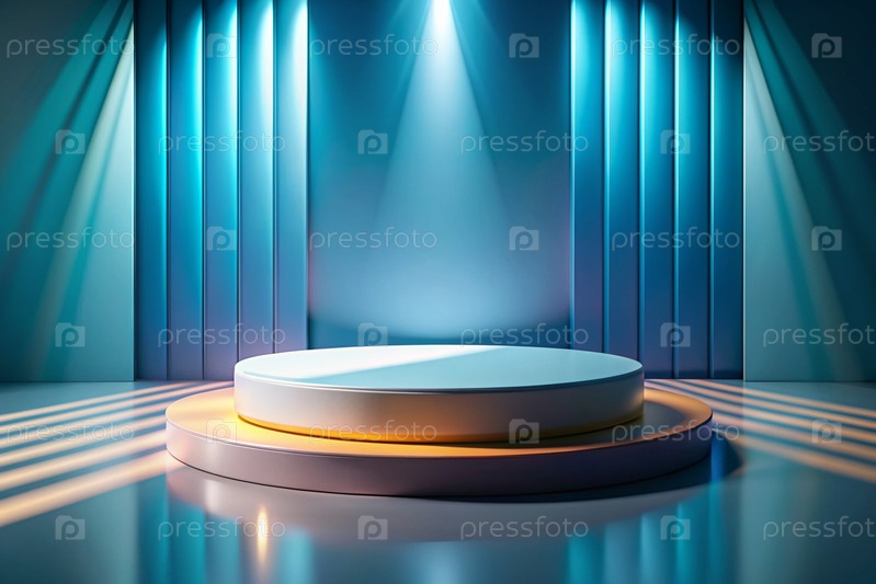 Минимальный фон для демонстрации продукта.Современная яркая трибуна с синей стеной.Креативный дизайн для презентации продукции