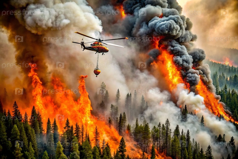 Опасность. Лесной пожар. Вид на самолет. Яркое пламя. Позаботьтесь о природе. Не разжигайте пожары в лесу