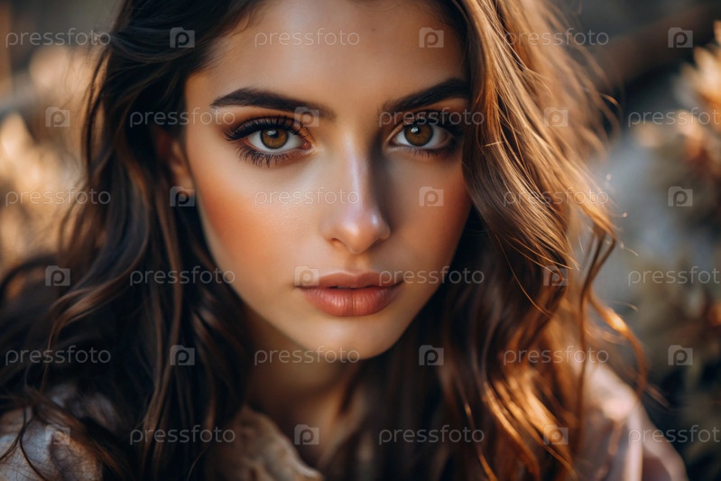 Глубокий эмоциональный портрет. Лицо молодой брюнетки без макияжа, с выразительными глазами, кудрявыми волосами. Естественная женская красота