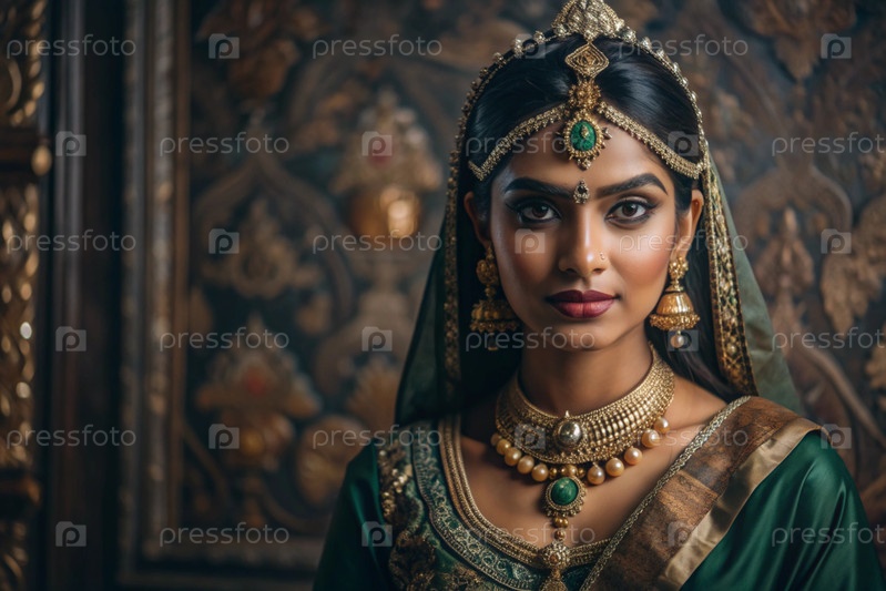 Красивая индийская девушка в традиционном национальном костюме, сари. со слонами. портрет символизирует традиции, культуру и красоту народа Индии