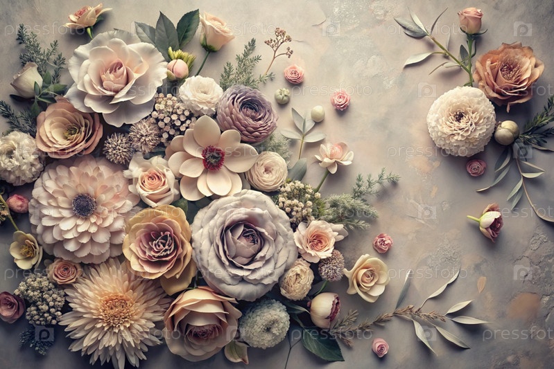 Красивый, воздушный, нежный цветочный фон в бежевых, кремовых и розовых тонах