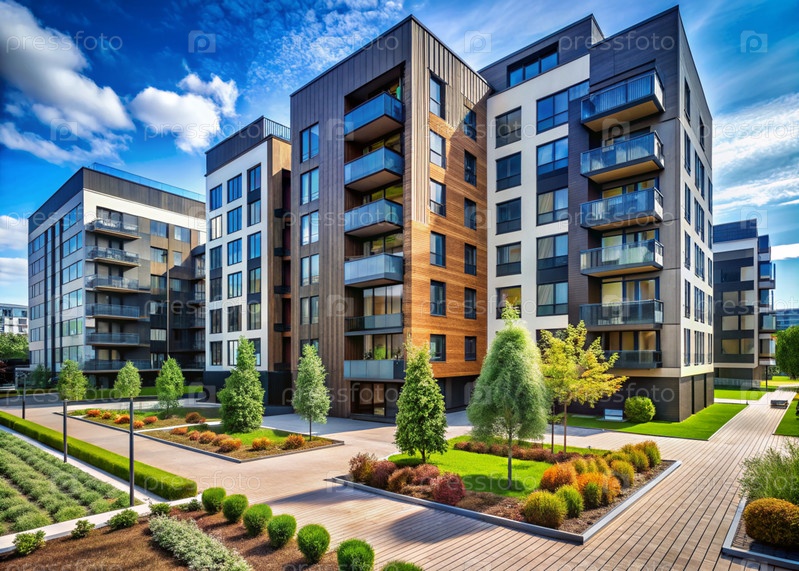 Современные многоэтажные жилые дома. Строительство новых жилых кварталов. Новые здания. Строительный бизнес. Ипотека для нового экологически чистого жилья