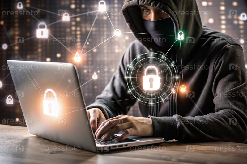 Хакер работает на ноутбуке, цифровые коды на виртуальном фоне. взлом и защита онлайн-данных. цифровые технологии, разработка программного обеспечения