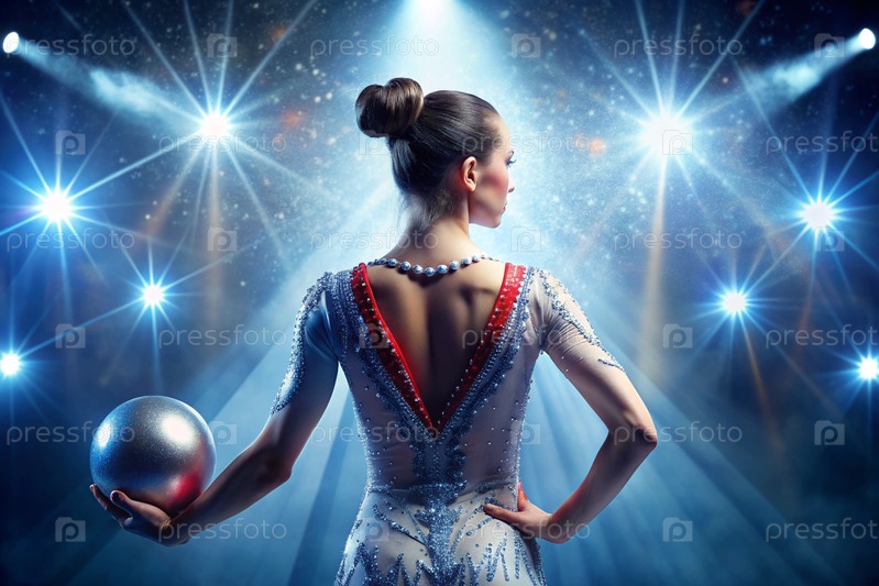 Ритмическая гимнастика Близкий план красивой гимнастки с мячом в центре внимания. олимпийский вид спорта