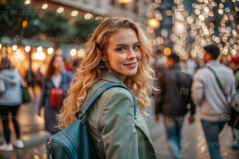 Портрет счастливого красивого путешественника с рюкзаком в городе против прекрасного боке. Путешествие в одиночку, образ жизни. Молодой турист наслаждается отдыхом