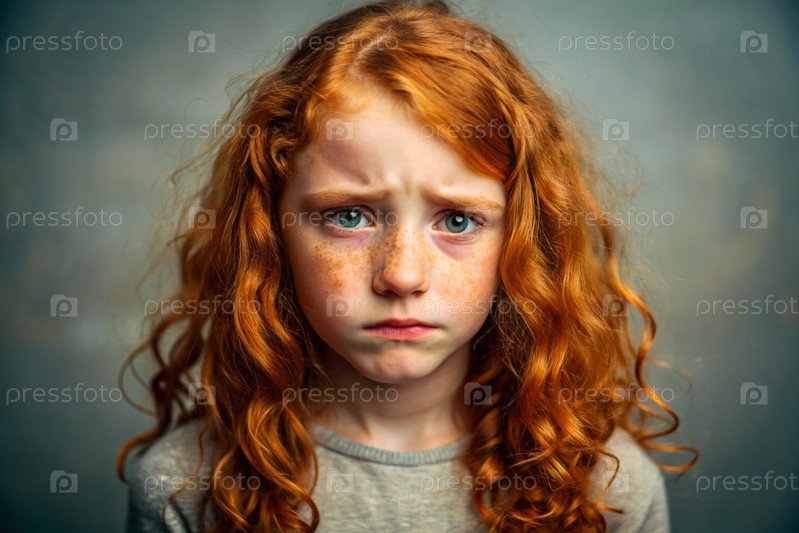 Портрет красивой, несчастной и печальной молодой рыжеволосой девочки-подростка.Проблемы, образование подростков